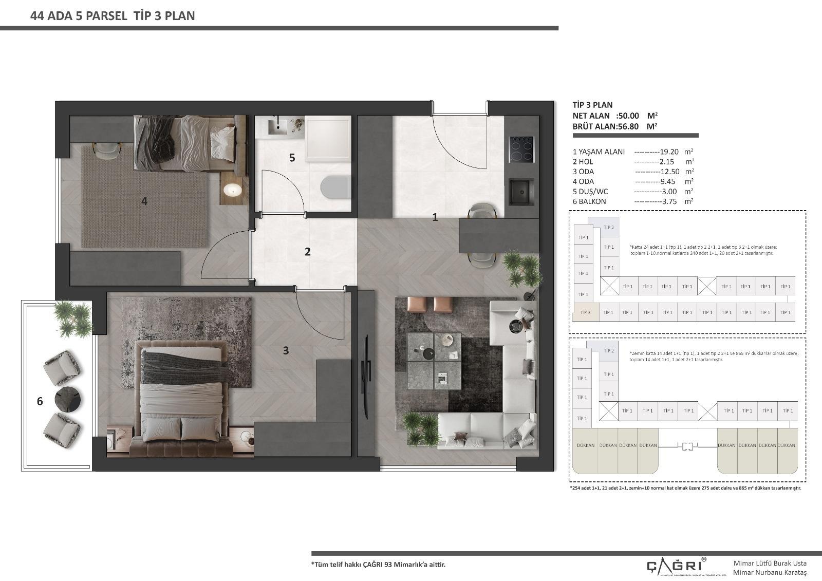 1+1 Daire | 2+1 Daire Tip 1 | 2+1 Daire Tip 2 | Vaziyet Planı